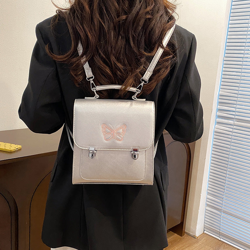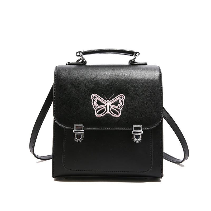 Cute with a side of bold—meet the FlutterPop Backpack. Designed for the girls who love to stand out, this compact backpack flaunts a glossy finish with a stitched pink butterfly that adds instant Y2K flair. The structured silhouette and dual buckle clasps keep your essentials stylishly secure, while the convertible straps let you wear it your way—whether crossbody, shoulder, or mini-backpack. Your new everyday flex just landed.