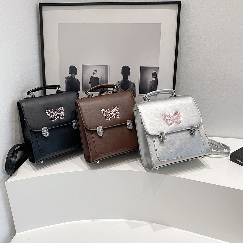 Cute with a side of bold—meet the FlutterPop Backpack. Designed for the girls who love to stand out, this compact backpack flaunts a glossy finish with a stitched pink butterfly that adds instant Y2K flair. The structured silhouette and dual buckle clasps keep your essentials stylishly secure, while the convertible straps let you wear it your way—whether crossbody, shoulder, or mini-backpack. Your new everyday flex just landed.